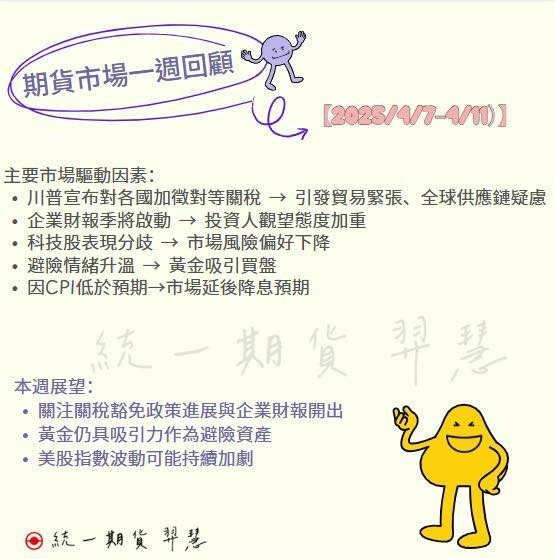 【期貨市場一週回顧(2025/4/7–4/11)】